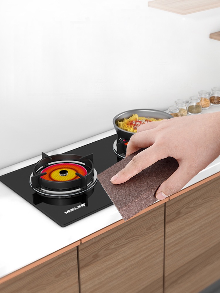 金剛砂納米海綿的外層是金剛砂層,金剛砂是一種常見的研磨材料,硬度很大,僅次于金剛石,將金剛砂顆粒粉碎磨細(xì),包裹在海綿外,特制的微小磨砂粒子專攻鍋外側(cè)的燒焦痕跡,鐵銹,砧板,烤箱,天然氣灶臺(tái)等頑固污漬,細(xì)砂質(zhì)感細(xì)膩,清潔力強(qiáng),海綿可以吸附水和清潔劑,材質(zhì)柔軟不傷手,也不會(huì)對(duì)鍋造成損傷。(相關(guān)閱讀:金剛砂納米海綿)